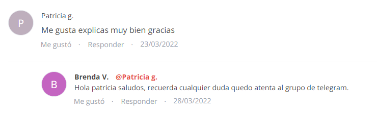 Formarás parte de un grupo privado de apoyo, donde podrás resolver dudas y avanzar con otras personas como tú.